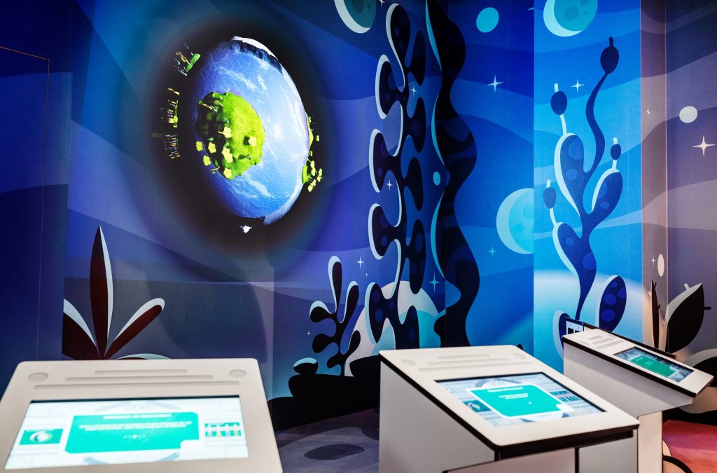 One of the interactive game experiences was also named the Planet Lab. A Planet full of chaos and nature dissasters and the players task was to create Harmony by mixing and throwing in different elements to complement the chaos.