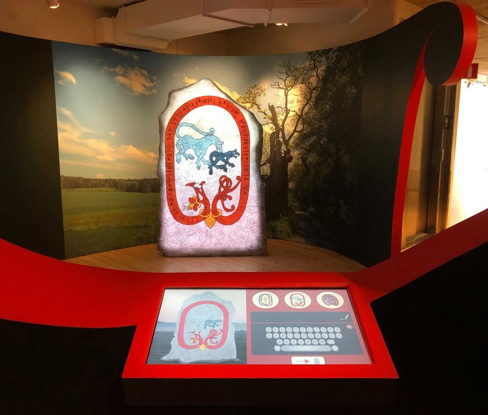 The run map – Is an interactive touch station where the user can click around on a map of Sweden among all the runes of Uppland. Here you can see brief information and see pictures of each rune. My assignment was as the art director and to have the responsibility for concept and design of the two stations.